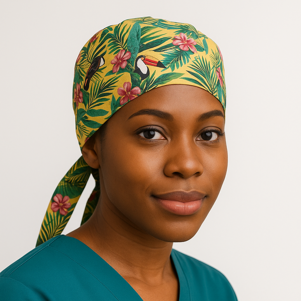 Each cap is ethically crafted by migrant women through Saoirse Ethnic Hands. They are breathable, comfortable, and made to lastl offering a sustainable alternative to single-use scrub caps.